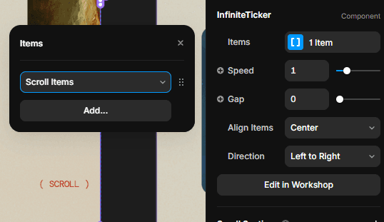 Component này là sự kết hợp giữa Hiệu ứng Ticker (chuyển động lặp lại) và tính năng Cuộn Vô Hạn. Nó tạo ra một dải nội dung chuyển động liền mạch, không ngừng nghỉ (Seamless Loop) trên layout của bạn.