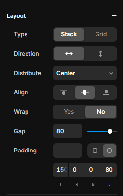 *LƯU Ý QUAN TRỌNG VỀ CĂN CHỈNH (ALIGNMENT): Để đảm bảo hiệu ứng hoạt động chính xác khoảng cách (Gap) giữa các Thành phần bên trong Stack phải bằng với giá trị Padding (Khoảng đệm) Trái của chính Stack đó (Hình 2).