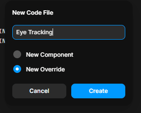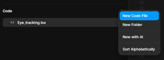 Tạo File Code: Trong mục Assets (Tài sản) > Code, chọn Thêm "New Code File" (Hình 1).